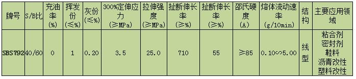 在瀝青中加入3%—15%的SBS792可改善瀝青的低溫屈撓性和高溫抗流動(dòng)性能。改善瀝青的低溫屈撓性可減輕瀝青低溫下的發(fā)硬、發(fā)脆、龜裂,提高公路、卷材的使用壽命。改善瀝青的高溫抗流動(dòng)性能可減輕瀝青在高溫下的軟化流淌。
